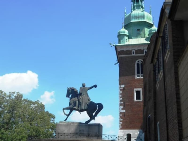 Tadeusz Bonawentura Kościuszko war ein polnischer Militäringenieur, der im Russisch-Polnischen Krieg von 1792 und als Anführer des nach ihm benannten Aufstandes von 1794 gegen die Teilungsmächte Russland und Preußen zum polnischen Nationalhelden wurde. Vorher hatte er bereits von 1777 bis 1783 im Amerikanischen Unabhängigkeitskrieg an der Seite George Washingtons gekämpft und sich für die Abschaffung der Sklaverei eingesetzt. Tadeusz Kościuszko wurde in Krakau mit einem Reiterstandbild geehrt, das 1920 am Eingang zum Wawel aufgestellt wurde. Das Original des Denkmals wurde im Zweiten Weltkrieg zerstört und 1960 durch die heute zu besichtigende Replik ersetzt, die die Stadt Dresden der Stadt Krakau schenkte.