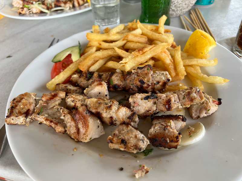 Sehr schönes Lokal mit Kinderspielplatz und herrlichem Ausblick aufs Meer in der Nähe des Horizon Beach Hotels, wo wir im Juni 2023 unseren Sommerurlaub verbracht haben.
