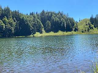 Auf ener Höhe von 1138 m liegt idyllisch gelegen der abflussfreie Taubensee. Er ist 3,6 Hektar groß und wird auch das Auge des Chiemgaus genannt. Besonders ist auch, daß die deutsch- österreichische Staatsgrenze mitten durch den See verläuft. Wenn man Glück hat sieht man Krebse im Wasser und ein erfrischendes Bad ist auch erlaubt. Eine Wanderung lohnt sowohl von Reit im Winkl , wie auch von Kössen aus.