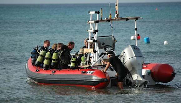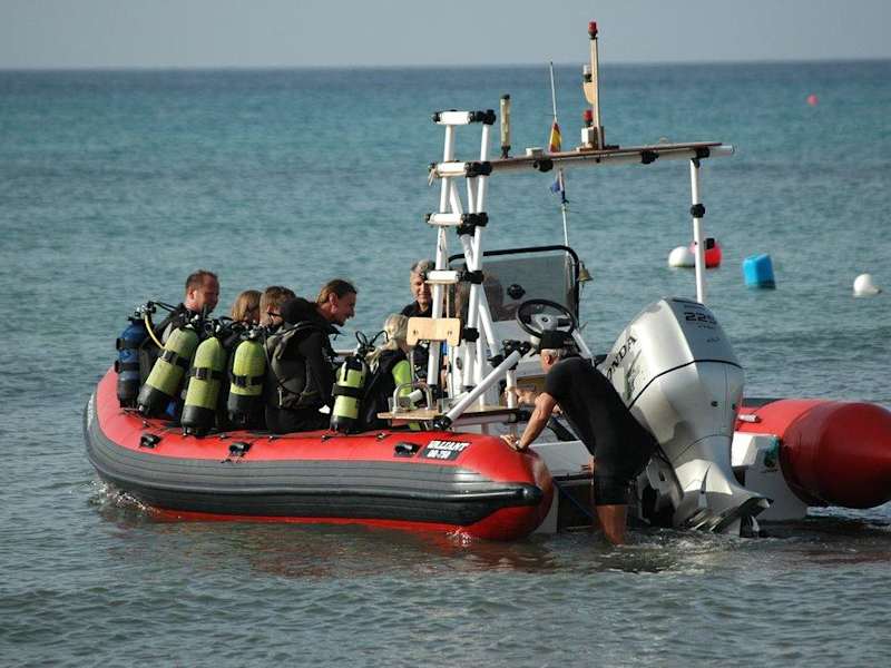 Tauchschule Fuerte Divers im Costa Calma Beach Resort, Fuerteventura Die Tauchschule ist in der Nähe des Wellnessbereiches des in direkter Strandlage gelegenen Hotels Costa Calma Beach Resorts zu finden. Die Tauchbasis wird von zwei deutschen Tauchlehrern (Simona Tietze und Kay-Uwe Cramm) geführt, die sowohl im VDTL als auch bei PADI organisiert sind. Kindertauchen ist schon ab 8 Jahren möglich. Die Tauchgänge werden alle vom Boot aus gemacht; hier stehen euch mindestens 20 verschiedene Tauchplätze zur Verfügung, die alleine von dieser Basis angefahren werden. Normalerweise findet ein Tauchgang morgens um 9.30 Uhr und ein zweiter um 14.30 Uhr statt, Nachttauchgänge können vereinbart werden. Ausflüge (z.B. Muränenriff in Jandia) mit zwei Tauchgängen werden regelmäßig angeboten. Preis pro Tauchgang zur Zeit bei eigener Ausrüstung 33.-€, ohne Ausrüstung 44.-€. Alle Ausrüstungsteile können geliehen werden, auch für Kinder, unterschiedlich große Flaschen in 5 l, 8 l, 10 l und 12 l Größe sind vorhanden.