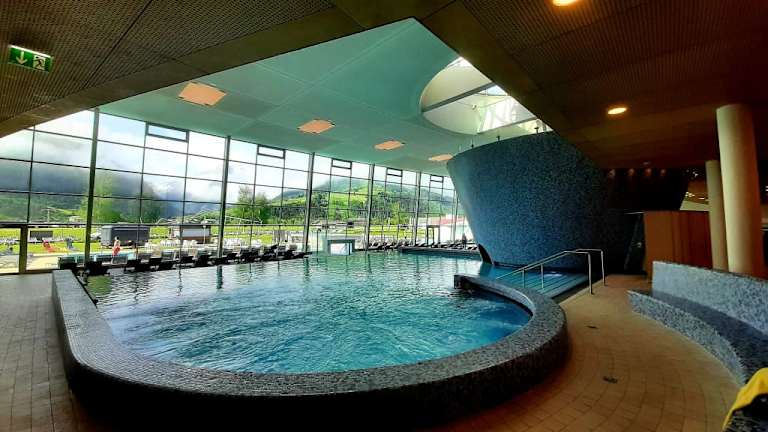 Sehr schönes Thermalbad mit Blick auf das Kitzsteinhorn. Hier fühlen sich auch Babys und Kinder wohl. Große Anzahl an Liegeflächen und Ruhezonen.