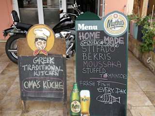 Im Zorbas spricht man auch Deutsch. Nicht nur das ist super, auch das Essen. An der Eingangstüre steht, "The best Stifado in the Town" das kann ich sehr wohl bestätigen. Das Zorbas findet man in der Straße beim Pinaleon in Richtung Strand, kurz vor der Hafenpromenade. Von Jorgos und Claudia wird man freundlich bedient.