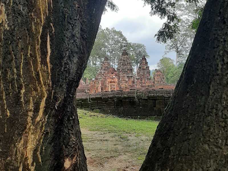 Der Erbauer dieses Palastes war kein König sondern ein Lehrer des Königs, ein Brahmane.So wurde dieser Tempel auch der obersten hinduistischen Gottheit nämlich Shiva geweiht. Schon wenn man am ersten Torbau steht kann man erahnen welche schönen Dinge dem Besucher geboten werden. Die Harmonie und die Fülle der Dekore sind einzigartig. Die Türstürze gehören zu den schönsten des Khmerreichs. Zierliche Göttinnen und Tänzerinnen aus Sandstein bedecken die Wände. Insgesamt ein liebenswerter Höhepunkt auf unserer Tour durch Angkor.