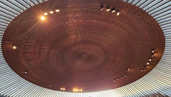 Anstatt eine Kirche auf den Felsen zu setzen, hat man sie in den Granitfelsen hineingebaut – oder besser gesagt; hineingesprengt. Denn an den Wänden erkennt man noch die Bohrlöcher im Gestein, in denen die Sprengladungen angebracht waren. Das offen sichtbare Gestein vermittelt eine ganz besondere Verbundenheit mit der Natur. Zusammen mit dem kupfernen Dach schafft das eine besondere Atmosphäre und auch eine herrliche Akustik.