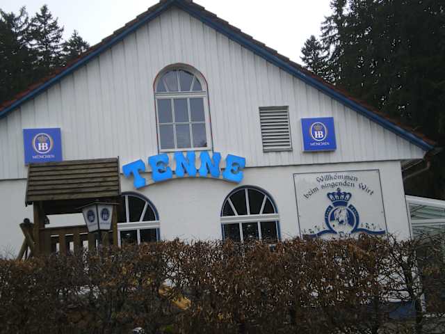 Die Tenne ist ein Wirtshaus am Rande von Braunlage.Zwischen zünftigen Haxen und leckeren Schnitzeln lädt der singende Wirt Frank Faber zur Hüttengaudi ein! Und dann wird schonmal auf den Tischen getanzt! Das läuft ungefähr so ab: Man bestellt sich einen Tisch, isst etwas leckeres aus der sehr guten Küche,oder man trinkt nur etwas.Dann wird richtig gute Partiemusik gespielt und der Wirt kommt dann so ca.4mal am Abend selbst ans Mikro.Er singt von Schlager bis Country usw.Und das auch richtig gut!!!Man kann tanzen,richtig "gröhlen"und wirklich Gaudi machen. Uns hat es richtig gut gefallen und wir werden bestimmt wieder kommen!