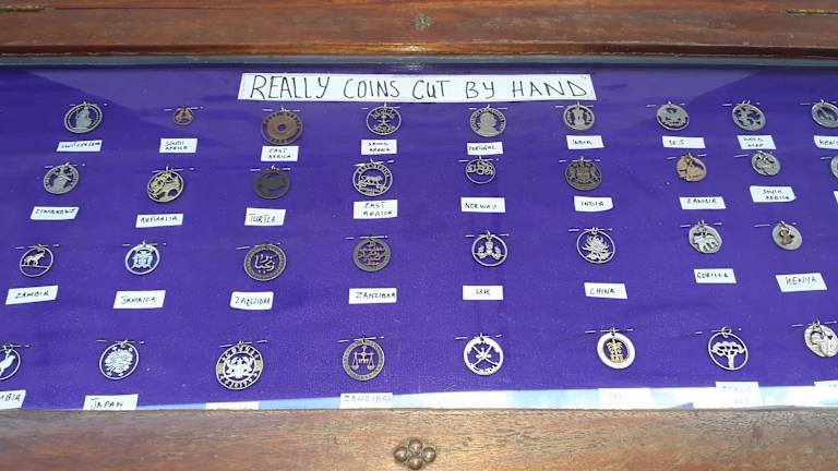 Mitten in den engen Gassen Stone Town‘s befindet sich ein wirklich interessantes Künstlergeschäft. In geschickter Handarbeit verwandelt der Künstler Münzen aus aller Welt (alte und neue) zu hübschen Ketten, Ohrringen, Anhängern etc. Deutsche Münzen sowohl Pfennige, DM als auch Cent und Euro. Wer nicht die Möglichkeit hat nach StoneTown zu kommen oder nach Sansibar zu reisen, kann auch gerne online bestellen und kaufen: https://www.facebook.com/thecoinsshop/?locale=de_DE +255 658 195 972 sissy@thecoinsshop.com https://www.zanzibar.com/places/the-coins-shop