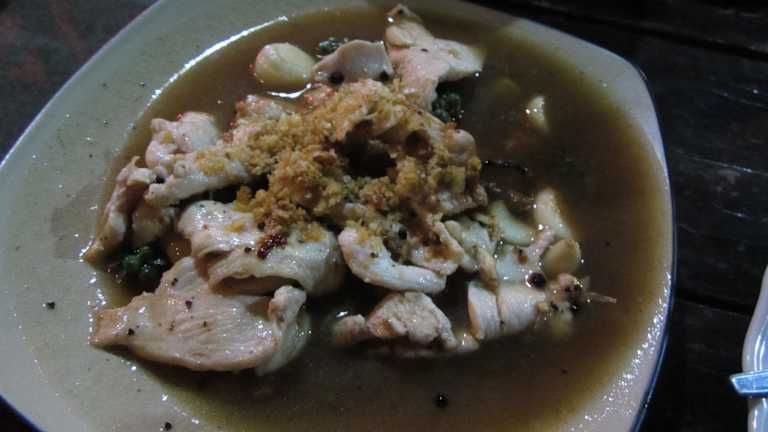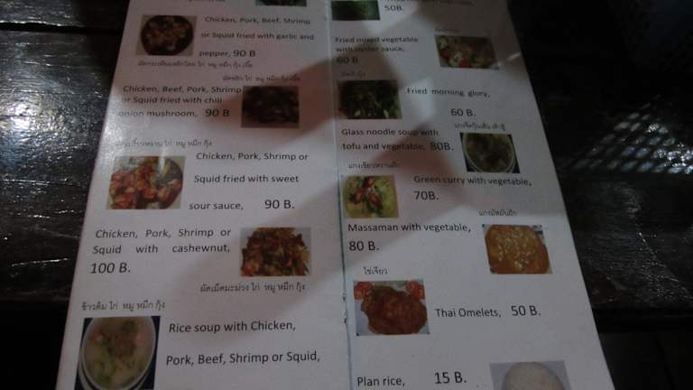 Das Essen ist offenbar eher auf uns Farangs ausgerichtet (weniger würzig, kaum scharf trotz pet-pet bestellung) , die Preise sind etwas höher als z.B. im boathouse und doppelt so hoch als an den Garküchen. wir waren daher nur einmal dort.