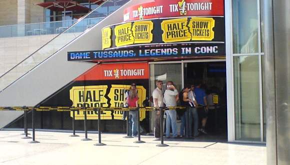 Sind schon vor unserer USA-Reise auf Tix4Tonight gestoßen, daher waren wir gespannt, wie groß die Auswahl vor Ort ist und wieviel man sparen kann. Waren echt überrascht, denn es gibt jede Menge Auswahl. Entweder gibt es Karten für den selben Abend oder den Tag darauf. Die Karten sind bis zu 50 % günstiger. Haben für die Show von David Copperfield für 2 Karten ca. 135 Dollar bezahlt. Lohnt sich also wirklich.