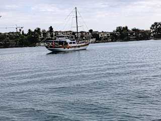 Der Ausflug findet immer Montag und Donnerstag statt, da nur an diesen Tagen der Basar in Manavgat besucht werden kann. Gebucht haben wir diesmal bei Vertau Reisen. Es war die Manavgat Bootsfahrt, Markt, und Wasserfälle. Hat alles gut funktioniert wir hatten viel Spaß. Wir haben das AI Programm gewählt für 25 € pro Person und haben es nicht bereut. Aber wirklich alles war bei dem Preis dabei egal ob, Kaffee, Wasser, Sprite, Bier ... und natürlich auch das Mittagessen. Dies ist wirklich zu empfehlen. Sind am Fluss Manavgat einbogen, der direkt ins Meer fließt. Hier wurde auch eine Badepause von 1 Stunde gemacht. auf der einen Seite vom Strand das Meer (Salzwasser), auf der anderen 11- 12° kühles Flusswasser ( Süßwasser) und danach gab es Mittagessen frisch gegrilltes Hähnchenfleisch oder Forelle mit Salat Brot (im Preis inklusive). Die Forelle war einfach spitze. Kalte und warme Getränke auf dem Boot wer nicht AI gebucht hatte,musste selbst bezahlen ( Bier 2, - € Alkohol freie Getränke 1, 50 €, ist aber nur halb so schlimm, man kann auch selber welche mitbringen. Für 2, 50 Euro wurde man dann an die Wasserfälle nach Manavgat mit dem Bus gefahren, Kinder unter 10 Jahren haben freien Eintritt, wer nicht mit wollte, wurde diesmal mit einen anderen Bus zum Bauernmarkt gefahren Wir hatten dann drei Stunden Zeit um auf dem Markt ein wenig zu bummeln. Das Essen auf dem Boot war fantastisch. Wir lieben die frisch gefangenen und gegrillten Forellen. 😘💕 Einfach ein Traum. Die Besatzung für wie die Busfahrer hatten viel Spaß Potential.