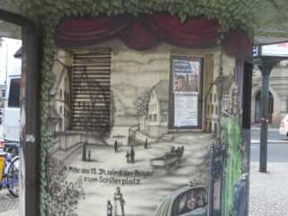In Dresden im Ortsteil Blasewitz steht auf dem Schillerplatz das runde, auffällige, kleine Trafohäuschen. Es ist ein Denkmal der anderen Art. Das Trafohäuschen am Schillerplatz ist auffällig bemalt mit diversen Szenen, die mit Schiller zusammenhängen. Die künstlerische Gestaltung dieses Trafohäuschen erfolgte durch „Hzschie“ (Helmut Zschiesche). Auf dem Trafohäuschen sind folgende Szenen dargestellt: 1.) Bild mit Friedrich Schiller (mit Ode An die Freude und mit Don Carlos, sowie mit diversen Büchern in der Schrankwand), 2.) Bild mit Johanne Justine Segedin (Johanne Justine Segedin war eine Bekannte von Schiller, die in der Gaststätte ihre Eltern, der „Fleischerschen Schenke“, dem heutigen „Schillergarten“, bediente und die unter den Namen „Gustel aus Blasewitz“ bekannt war. Sie wurde von Schiller in seinem Wallenstein verewigt, indem er ihr die Rolle einer Marketenderin zukommen ließ und die Jäger riefen „Was? der Blitz! Das ist ja die Gustel aus Blasewitz!“. 3.) Bild mit einer Mischung aus Theaterbühne, Blasewitz und Elbe. Wir sind auf unserem Weg zum Biergarten Schillergarten und dem Blauen Wunder an diesem schönen Trafohäuschen vorbeigekommen, wobei wir uns dieses Denkmal der anderen Art doch gleich mal nöher angesehen haben.