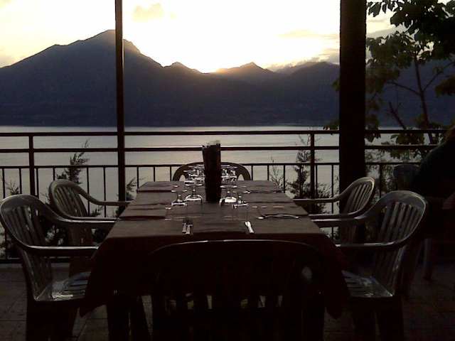 Die Trattoria liegt versteckt in der Loc. Crero. Von der Gardesana fährt man ein schmales Sträßchen ca. 1. 500 m den Berg hinauf. Dort endet die Straße in einem alten Dörfchen mit wenigen Häusern und einer schön gelegenen kleinen Kirche. Es gibt ca. 4 - 5 Parkplätze direkt an der Trattoria. Falls die besetzt sind, gibt es vorher noch einen Parkplatz. Zuerst sieht man die Bar auf der rechten Seite, die traumhaft gelegene Terrasse liegt links etwas versteckt. Aufgrund der versteckten Lage haben wir abends ohne Reservierung einen Tisch bekommen. Insgesamt waren auch nur die Hälfte der Tische besetzt. Der Service ist nett und aufmerksam, das Essen von excellenter Qualität. Unsere Empfehlung sind die hausgemachten Ravioli mit Kürbiscremefüllung in Butter und Salbei geschwenkt sowie als Beilage die Peperonata de la casa (Paprikagemüse), welche sensationell schmeckten. Mit zusätzlichem Hauptgang, Flasche Wasser und Lugana, Nachtisch und Espresso haben wir 65,- € bezahlt und waren sehr zufrieden, so ein tolles Essen in dieser Lage zu geniessen.