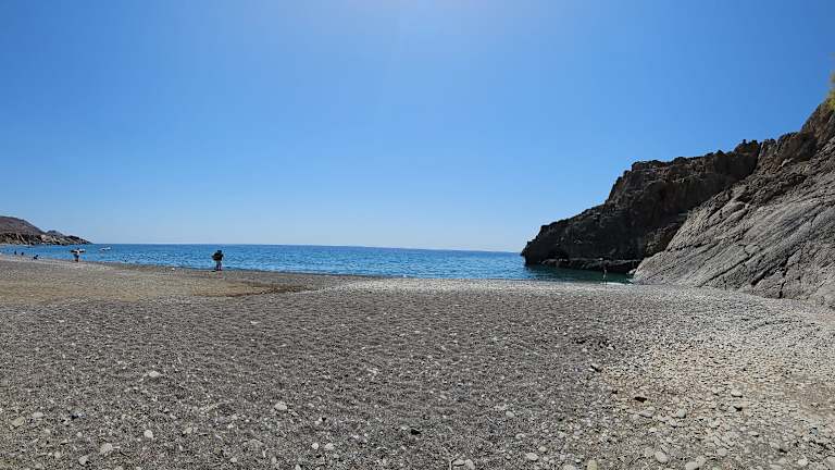 Wunderbarer sauberer Strand mit glasklarem Wasser in einer übersichtlichen Bucht. Ganz oben ist es feiner Sandstrand, je näher man dem Wasser kommt desto kieseliger und gröber wird der Sand. Ab ca. 2 Meter im Wasser beginnen durchgehend Steinplatten. Es gibt Liegestühle und Sonnenschirmen von Hotels, die aber für 10 Euro am Tag auch für Nicht-Gäste der Hotels gemietet werden können. Freizeitaktivitäten werden nicht angeboten. Es gibt einen öffentlichen Bereich mit Liegen, wobei mir hier Preise nicht bekannt sind. An diesem öffentlichen Bereich gibt es eine Snack-Bar. Das absolute Highlight ist die Taverne Pyrofani direkt neben dem großen Hotel Dream Palace.