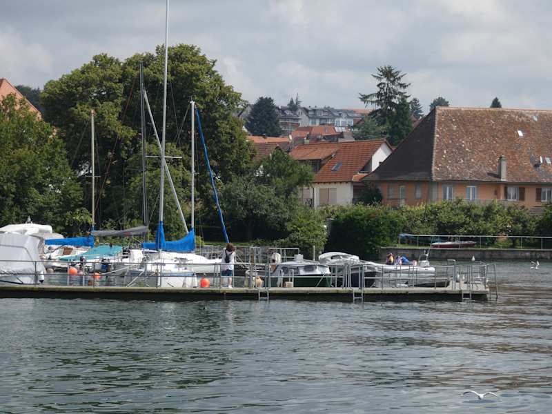 Der Schiffsanlegersteg von Hagnau ragt weit in den Bodensee hinein. Von hier kommt man zur kleinen Promenade und zur Seestraße, wo man diverse schöne, teils mehrere Jahrhunderte alten Gebäude, vorfindet. Das kleine Weindorf am Bodensee hat uns recht gut gefallen.