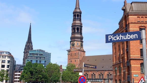 Wenn jemand zum Hummel-Bummel auf den Strich geht, so hat das hier eine ganz andere Bedeutung. Der Hummel-Bummel ist ein Rundgang durch die Hamburger Neustadt. Dazu folgt man einem roten Strich, der den Weg zeigt. Man kann zu Fuß viel erkunden, an vielen Stellen sind Schilder mit Erklärungen zu den Sehenswürdigkeiten, den ehemaligen Lebensbedingungen, den Menschen die hier lebten usw. angebracht. Für den Hummel-Bummel-Weg gibt es 4 Startpunkte, welche sich am Michel, am Museum für Hamburgische Geschichte, an der Laeizhalle und am Neuen Wall befinden. Man kann aber jederzeit auch zwischendurch einsteigen wenn man unterwegs auf die rote Wegmarkierung trifft. Alle diese Wege treffen sich am Großneumarkt. Wir sind ab St. Michaelis / Michel ein Stück auf dem roten Strich gegangen und wir haben dies als sehr interessanten Spaziergang erlebt.