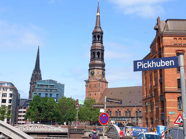 Eine rote Linie auf den Gehsteigen, Plätzen und Straßen führt durch Teile der Neustadt von Hamburg. Folgt man dieser Linie, kommt man an diversen interessanten Orten und an manchen Sehenswürdigkeiten vorbei. Es gibt insgesamt 4 Routen, die sich alle am Großneumarkt treffen. Wir waren in der Kirche St. Michaelis (Michel), als wir auf einen der Startpunkte getroffen sind. Da wir nichts besonders vorhatten, sind wir dem roten Strich ein Stück gefolgt. Der Weg geht überwiegend durch ruhige, verkehrsarme Straßen, Gassen und Plätzen, was wir als sehr angenehm empfunden hatten. Erklärende Schilder geben unterwegs gute Informationen. Wenn Sie auf den roten Strich treffen, so folgen Sie diesem doch ruhig mal ein Stück.