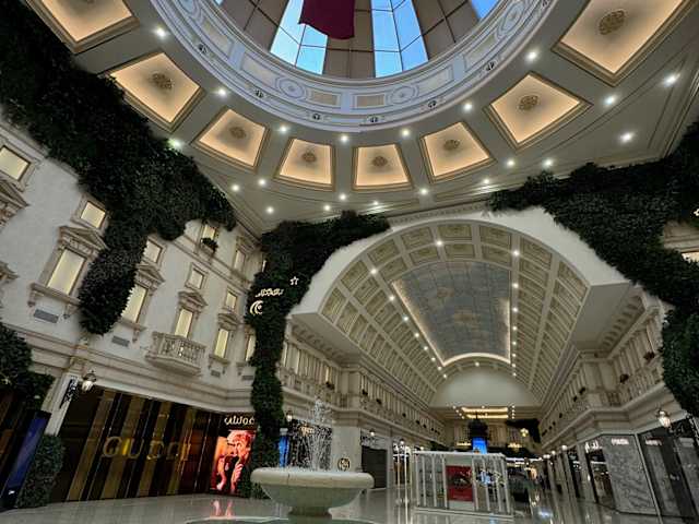 Die Villaggio Mall ist nicht nur ein einfaches Einkaufscenter, sondern eine Erlebnis Mall vom Feinsten. Sobald man sie betritt, hat man das Gefühl in Venedig zu sein. Das Ambiente vom blauen Himmel über die venezianischen Häuserfronten bis zum Kanal, der das Einkaufszentrum durchzieht, haucht alles italienisch an. Am Anfang und Ende des Kanals liegen Gondeln im Wasser, die von Gondolieri bedient werden. Über den Kanal führen mehrere Brücken teilweise mit gastronomischen Angeboten. Des Weiteren finden sich in der Mall eine Kirmes und diverse sportliche Aktivitäten, u.a. eine Eislaufbahn. In der Mall ist für jeden Geldbeutel etwas dabei. Es gibt die Geschäfte für jedermann, aber auch einen Luxusbereich mit Edelmarken der an die Viktor-Emanuel-Passage in Mailand erinnert. Die Mall ist am besten mit der gelben Metrolinie (Endstation Haltestelle Al Aziziyah) zu erreichen. Mein persönlicher Tipp, wenn man nur in Ruhe schauen und nichts einkaufen oder essen möchte, einen Besuch am Freitag zwischen 11.00 Uhr und 14.00 Uhr einzuplanen. In der Hauptgebetszeit am Wochenende kann man zwar in die Mall, aber es hat alles geschlossen. Weil freitags die Metro ebenfalls erst ab 14.00 Uhr fährt, empfiehlt es sich mit dem Taxi hinzufahren und mit der Metro zurückzufahren. Um 14.00 Uhr am Freitag erwachen sowohl die Mall als auch die Stadt schlagartig zum Leben.
