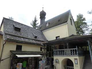 Nach unserer Breitenstein-Rundwanderung besuchten wir noch die Wallfahrtskapelle Maria Himmelfahrt in Birkenstein. Die Wallfahrtskapelle in Birkenstein ist malerisch gelegen, oberhalb von Fischbachau im Leitzachtal. Der Wallfahrtsort Birkenstein geht auf eine Legende aus dem 17. Jahrhundert zurück. Dem Fischbachauer Pfarrvikar Stiglmair und auch zwei Bauern soll damals die Mutter Gottes im Traum mit den Worten erschienen sein: „Wer mich an diesem Ort verehrt, dem werde ich meine Hilfe schenken.“ 1673 ließ der Pfarrvikar zuerst eine Holzkapelle bauen. Die jetzige Kapelle wurde erst 1710 errichtet. Die in diesem Jahr erbaute Kapelle ist eine Nachbildung des "Heiligen Hauses", in dem die Hl. Familie in Nazareth lebte. Seither wird dort von vielen Wallfahrern eine aus der Pfarrkirche Fischbachau stammende spätmittelalterliche Marienstatue als Gnadenbild verehrt. Unzählige Votivtafeln erzählen davon, wie Menschen ihr Glück oder ihre Heilung als Wunder erfahren haben. Auf jeden Fall soll man über eine Holztreppe auf einen Laubengang hinaufsteigen. . Dort befindet sich ein Ölgemälde, auf dem die Entstehungsgeschichte der Kapelle dargestellt ist. Der Höhepunkt ist der kleine Kirchenraum mit seinen 92 Engelsfiguren. Darüber spannt sich ein dunkelblaues Gewölbe, ein barocker Sternenhimmel. Im Zentrum des Raumes verweilt die Mutter Gottes, umgeben von einem gewaltigen, goldenen Strahlenkranz. Die Ordensschwestern von den Armen Schwester kümmern sich um die Wallfahrtsstätte. Vor dem Wohnhaus der Armen Schwestern befindet sich eine riesige Linde, die laut Hinweistafel im Jahr 1846 gepflanzt wurde. Im Marienmonat Mai kommen tausende Wallfahrer aus Oberbayern und Tirol zu dem kleinen Wallfahrtsort nach Birkenstein. Zur Kirchenanlage gehören auch der Freialtar und die Kreuzigungsgruppe auf dem der Kapelle gegenüberliegenden Hügel. Natürlich gehört auch ein Andenkenladen zur Wallfahrtskirche. In dem Klosterladen gibt es Postkarten, Kerzen usw. zu kaufen. In der Kirche darf man nicht photographieren. Im Vorraum weist ein Schild darauf hin: Es wird freundlichst um Ruhe und würdiges Benehmen im ganzen Vorraum gebeten. Bekannt ist auch der Rosenkranzweg. Dieser Weg wurde anlässlich der 300.jährigen Wiederkehr der Grundsteinlegung der Wallfahrtkirche (1710) im Jubiläumsjahr 2010 errichtet. Die bildlichen Darstellungen orientieren sich laut Info im Internet, an den einzelnen „Geheimnissen“ des freudenreichen, lichtreichen, schmerzhaften und glorreichen Rosenkranzes. Die einzelnen Stationen bestehen aus Holz und wurden in einer Holzbildhauerwerkstatt in Bad Tölz geschnitzt. Unterhalb der Kirchenanlage befinden sich an einem Seitenweg die kleine Herz-Jesu-Kapelle und die Lourdesgrotte. Als Lourdesgrotte werden Mariengrotten bezeichnet, die Nachbildungen der Grotte von Massabielle bei Lourdes in Südfrankreich und "Unser lieben Frau von Lourdes" darstellen. Eine sehenswerte Wallfahrtskapelle in Birkenstein.