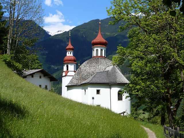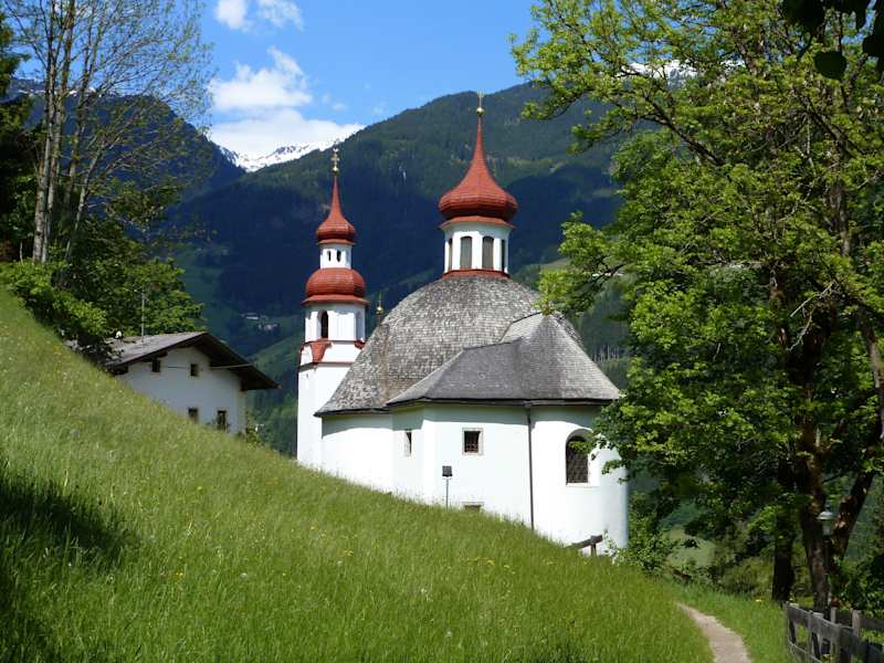 Oberhalb von Zell am Ziller befindet sich die schöne Wallfahrtskirche Maria Rast, deren achteckiger Zentralbau in den Jahren 1738 und 1739 entstand. Im Inneren der Kirche fällt der Blick sofort auf den aufwendig geschnitzten Rokokohochaltar und die bekleidete Gnadenmadonna von 1658. Sehr eindrucksvoll sind auch die Deckenfresken, die vom Barockmaler Josef Michael Schmutzer gestaltet wurden und Ausschnitte aus dem Leben Jesus Christus zeigen. Verfasst von HolidayCheck