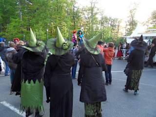 Traditionell ist die Walpugisnacht, also die nacht zum 1.Mai, die Nacht, in der die Hexen ihr Fest feiern und vom Hexentanzplatz zum Brocken durchstarten. Ergo ist die Fete auf dem Hexentanzplatz sicher eine der besten im ganzen Harz. Geboten wurde: 2 Bühnen (Metal zum einen und auf der Großen Schlager) später eine spezielle Umsetzung des Faustischen Themas als Event des Abends(mit Lasershow,Stelzenläufern, Feurerschluckern usw.). Mitternacht ein Höhenfeuerwerk. Für das leibliche Wohl ist in allen erdenklichen Variationen der Imbissküche gesorgt, die Wartezeit hält sich in Grenzen. Dieses Jahr gab es aufgrund des klaren Himmels einen schönen Sonnenuntergang,natürlich wurde es danach empfindlich frisch. Zu bewundern waren zum Teil sehr fantasievolle Kostüme, vorzugsweise als Hexe oder Teufel, ebenso Anleihen an Dracula oder Gothic. Derart kostümiert macht es natürlich in der Gruppe oder mit Kindern den meisten Spass - es blieb auch friedlich, alle in bester Stimmung! Natürlich muss man erstmal hoch und dann wieder herunter; insgesamt war dies mit Shuttlebussen und der Kabinenbahn(fuhr wohl bis 2.30 Uhr) sehr gut organisiert, wer die Bahn benutzen möchte sollte allerdings zu den Hauptzeiten 1-2 Stunden an Wartezeit mitbringen - es gehen halt nur 4 Leute rein. Kann man auch zu Fuss machen-dann natürlich an eine kräftige Taschenlampe denken! Fazit: Wer eh im Frühjahr ein paar Tage Harz "machen" möchte sollte dieses Event mitnehmen!