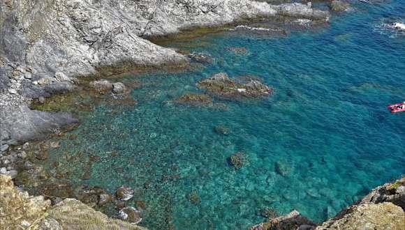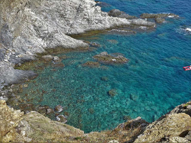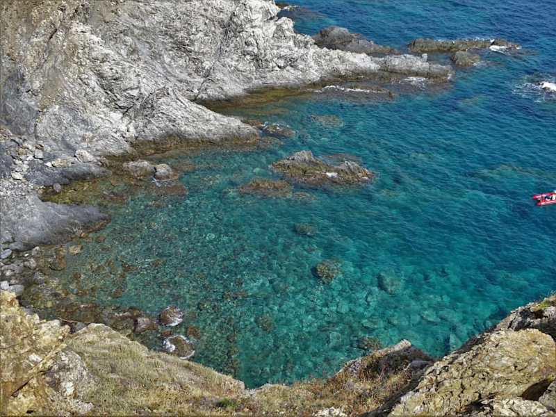 Südlich von Banyuls ragt ein Bergrücken der Pyrenäen ins Mittelmeer, welcher mit seinen steilen Klippen, einer herben Küstenregion im Wechsel von Sturm, Salzgischt und erbarmungsloser Hitze, sowie seiner umwerfenden Aussicht auf jeden Fall einen Besuch lohnt – das „Cap l'Abeille“. Von der Küstenstraße D914 zweigt bereits gut 1,5 Kilometer nach dem Ortsausgang von Banyuls in Richtung Cerbère ein unbefestigter Feldweg ab, an dem man ausreichend Platz findet, um das Auto abzustellen. Zu Fuß geht es dann nach einer Schranke und vorbei an neugierigen Ziegen in Richtung Meer – begleitet wird man von einer überaus robusten und selektierten Macchia-Vegetation, die den widrigen Lebensbedingungen auf dem Bienen-Kliff widerstehen kann – Buschheide, Thymian und Stechginster haben sich mit dem felsigen Untergrund arrangiert und überstehen dort nicht nur monatelange Dürre, sondern auch Orkane und den Salznebel der Brandung. An der Spitze des „Cap l'Abeille“ wird es dann psychologisch – ohne jede Sicherung geht der Trampelpfad in einer Höhe von gut hundert Metern immer schmaler zum Ende des Caps - je weiter man sich in Richtung Meer traut, desto spektakulärer fällt der Blick in die Tiefe aus und umso risikoreicher wird allerdings auch jeder weitere Schritt. Die Wanderung zum Cap l'Abeille ist ein wunderschönes Naturerlebnis, welches Meer und Berge auf sehr eindrucksvolle Art vereint. Als Tipp: Bei starkem Wind sollte man auf den Ausflug besser verzichten, der dann spätestens an der Felskante zu einem lebensgefährlichen Unterfangen gerät.