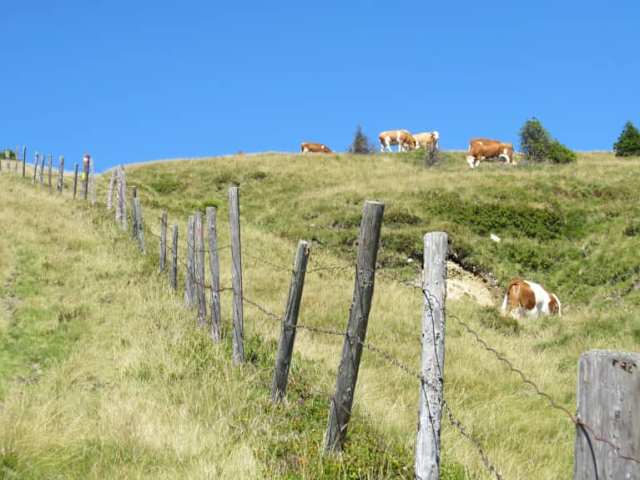 Ich habe mir diesmal einen schönen heißen, wolkenlosen Sommertag ausgesucht, um der großen Hitze im Tal zu entgehen. Vom Gemeindeamt Rettenegg ( Parkplätze ) bin ich den mäßig steilen Waldweg zur Pretul ( 1600 m ) zum Gasthof Roseggerhaus, das schon über der Baumgrenze liegt, hochgestiegen. Hier haben sie einen riesigen gewöhnungsbedürftigen Windpark im Blickfeld. Dann geht es über die baumlose beweidete Rettenegger Alm, etliche Kilometer, immer am Kamm entlang, bis zum höchsten Punkt der Wanderung, dem Stuhleck, der auf 1782 m liegt. Während dieser weitläufigen Almwanderung, müssen sie aber Weideflächen mit vielen Kühen, durchqueren. Ich bin deshalb aus Sicherheitsgründen, wenn möglich außerhalb des Weidzaunes gegangen. Faszinierende Aussichten begleiten einem auf dieser Wanderung: freie Sicht hinunter ins Mürztal und bis zum Wiener Becken, hinauf zum Semmering mit Rax und Schneealpe. Auf der anderen Seite erblicken sie den Hochwechesel und das gesamte Joglland. Vom Stuhleck ( Alois Günther-Haus ) müssen sie wieder ca. 2 km denselben Weg zurückgehen und dürfen dann die Abzweigung am Schwarzriegel nicht verpassen, den hier geht es steil auf den sogenannten Planetenweg hinunter zum Ausgangspunkt nach Rettenegg. Insgesamt eine langes anstrengende Rundwanderung mit ca. 950 m Höhenunterschied und einer Länge von 17 km. Kondition ist auch gefragt. Ich war mindestens 6 Stunden unterwegs. Kein Asphalt, nur Wald und weiche Almwege. Gut beschildert. Eindrucksvoll !