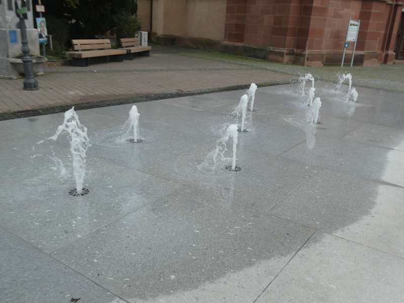 Wasserspiele vor der Kirche in Geisenheim