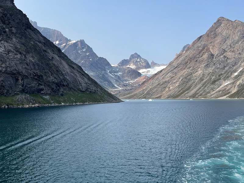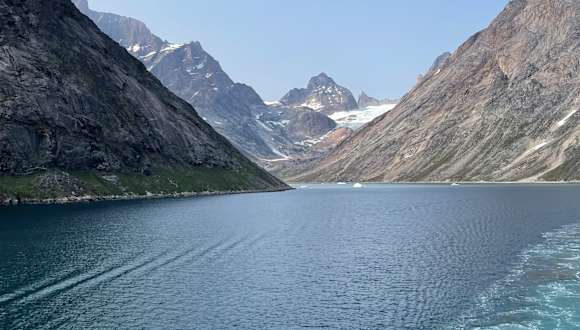 Der Prins Christian Sund ist ein ca. 100km langer Fjord an der Südspitze Grönlands. An seiner schmalsten Stelle ist er nur 500m breit. Während der Fahrt sieht man neben schroffen Felsen auch grüne Wiesen, Wasserfälle und natürlich auch Eisschollen und kleinere Eisberge.