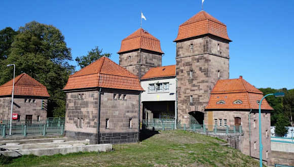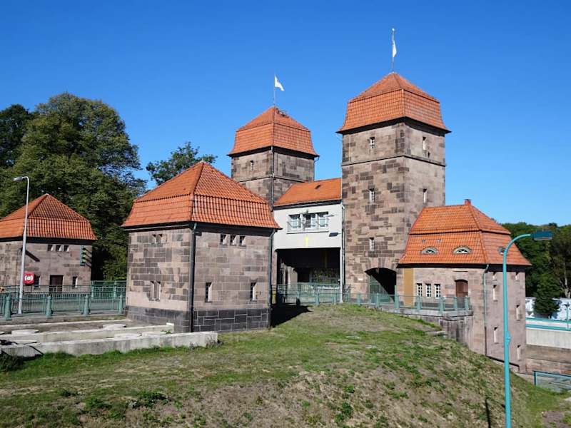 Zu den wohl bedeutsamsten Sehenswürdigkeiten in der Region um Minden gehört das Wasserstraßenkreuz, an dem der Mittellandkanal in einer Trogbrücke über eine Länge von knapp 400 Metern das Wesertal und den Fluss überspannt. Neben der alten Brückenkonstruktion, die inzwischen unter Denkmalschutz steht, gibt es am Wasserstraßenkreuz aber auch noch ein weiteres technisches Meisterwerk: Die Schachtschleuse aus dem Jahr 1914. Als massives Bauwerk errichtet, beträgt die Länge ihrer Schleusenkammer 85 Meter bei einer Breite von 10 Metern und bewältigt einen Höhenunterschied von beeindruckenden 13 Metern zwischen dem hohen Mittellandkanal und der wesentlich tiefer fließenden Weser. Schon damals war man bei diesen Ausmaßen und einem Kammervolumen von 11.300 Kubikmetern um den Wasserstand des MLK besorgt und um nicht bei jeder Schleusung dem Kanal gleich mehr als 10 Millionen Liter Wasser abzuziehen, wurden beidseits der Kammer insgesamt 16 sogenannte „Sparbecken“ auf vier verschiedenen Ebenen angelegt. Das Prinzip ist genial: Beim Entleeren der Kammer füllt das Wasser nacheinander Niveau um Niveau aller Sparbecken, um sich in umgekehrter Reihenfolge bei der Aufwärtsschleusung wieder in die Kammer zu entleeren. Ohne Pumpen und nur mit Hilfe der Schwerkraft bewahrt man auf diese Weise noch heute etwa zwei Drittel der Wassermassen, die sonst vom Kanal in die Weser fließen würden - bei mehr als 6000 Schleusungen pro Jahr eine unvorstellbar große Menge! Die Schachtschleuse kann zusammen mit dem Informationszentrum des „Wasserstraßen- und Schifffahrtsamtes Minden“ gegen einen geringen Obolus aus nächster Nähe besichtigt werden und es ist schon spannend, wenn die einfahrenden Ausflugsdampfer innerhalb von wenigen Minuten aus der Sonne in die dunkle Tiefe der Schleusenkammer verschwinden.