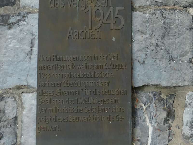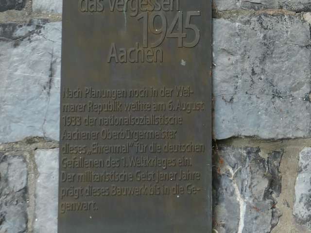 Das in Aachen umgesetzte Projekt „Wege gegen das Vergessen 1933–1945“ ist ein Mahnmal, welches an die Verbrechen erinnert, die die NAZIs in Aachen und an den Aachener Bürgern und Bürgerinnen begangen hatten. An 43 Stationen findet man die Gedenktafeln dieses dezentralen Denkmals, so z.B. beim Hauptbahnhof, am Theaterplatz, beim Marienturm (Marienburg) in der Ludwigsallee, am historischen Rathaus, im Katschhof, in der Monheimsallee (dort, wo das Haus stand, in dem Anne Frank von Juli 1933 bis Januar 1934 bei ihrer Großmutter wohnte), bei der Kirche St. Adalbert am Kaiserplatz, am Münsterplatz usw. Wenn Sie auf diese Gedenktafeln treffen, so lesen Sie diese doch einmal durch und gedenken Sie dabei den Opfern.