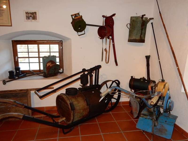 Neben der Vinothek über Stiegen im ersten Stock durch den Hof befindet sich das Weinbaumuseum von Klöch mit seiner Geschichte seit 1444. Zu finden viele verschiedene Weinbauwerkzeuge aus vergangenen Zeiten und eine alte Baumpresse aus dem Jahre 1812. Schön gemacht und ein kleiner Rückblick, ein Nostalgiestoß sozusagen...