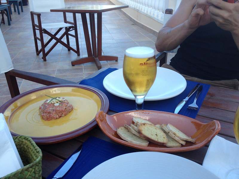 Sa Cova ist ein kleines Weingut nördlich von Sant Mateu gelegen. Es werden eine Hand voll Weine zum Verkauf angeboten. Eine Weinprobe ist jederzeit möglich, außer Sonntags. Für das leibliche Wohl kümmern sich zwei junge venezuelanische Köche, die Ihr Handwerk verstehen. Es gibt zwar eine kleine Karte, jedoch kann man den Jungs auch sagen was man mag oder nicht. Wir haben das so gemacht und wurden mit verschiedene lecker frischen Gerichten überrascht. (s.a. Bilder) Preislich gesehen haben wir für 5 Tapas (inkl. Pata Negra Schinken) und zwei Hauptgerichten 64€ gezahlt. Die Jungs haben sich gefreut für uns zu kochen, was sich auch in der Qualität des Essens wiederspiegelte. Gespeist wird übrigens auf der Veranda des Weinguts, in absoluter Ruhe, mit Blick über das ganze Tal bis zu den angrenzenden Bergen. (s.a. Videoclip). Über die Qualität der Weine möchte ich kein Urteil abgeben, da die Geschmäcker verschieden sind. Na dann viel Spaß beim Ausflug ins ursprüngliche Ibiza. ; )