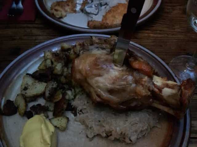 Ja so stell ich mir ein Essen in Heidelberg vor! Auf Grund der positiven Bewertungen versuchten wir eine telefonische Reservierung; man konnte uns aber keinen Platz mehr vorhalten. Kein Wunder, denn die Schnitzelbank ist nicht all zu groß und hat vorwiegend kommunikative, sprich große Tische. Wir gingen dann auf gut Glück hin und bekamen den Hinweis, dass in Kürze etwas frei würde. An der winzigen Theke warteten wir keine fünf Minuten, dann erhielten wir an einem 6er-Tisch zwei Plätze. Mit dem dort bereits sitzenden Ehepaar kamen wir sofort ins Gespräch. Zum Haus-Riesling aus dem Fass aßen wir die Schweinshaxe und Schnitzel nach Art des Hauses. Beides riesige, sehr schmackhafte, Portionen. Die beiden Jungs an der Theke und im Service waren super freundlich und hatten immer eine guten Spruch auf den Lippen. Etepete darf man nicht sein, um hier glücklich zu werden. Wer diesen Anspruch nicht hat, wird es aber sicherlich.