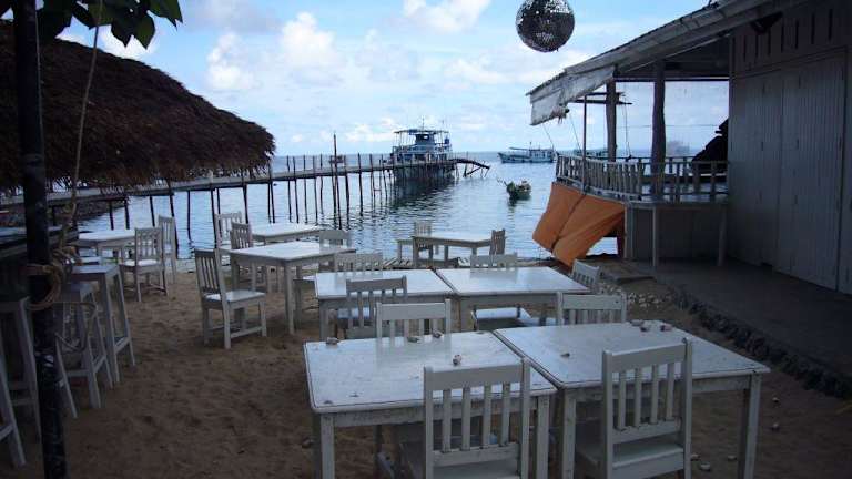 Kleines Restaurant mit Bar am Strand von Mae Haad. Immer gut besucht. Sehr romantisch. Wunderbar zum Chillen und bei einem leckeren Cocktail der Sonne beim Untergehen zuschauen. Hier ist alles weiß: das Mobiliar, die Lichterketten in den Bäumen, die Kellner sind ganz in weiß gekleidet – selbst die Speisekarte ist weiß. Gutes Seafood. Feine Cocktails. Eurpäisches Preisniveau. Sehr freundlicher Service. Eine gute Wahl für einen schönen Abend auf Koh Tao! Lage: am Strand von Mae Haad, in der Nähe des Piers.