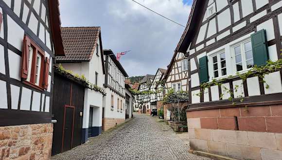 Die Winzergasse in Gleiszellen gehört mit zu den schönsten und romantischten Sehenswürdigkeiten in der Pfalz. Im Sommer, wenn die Weinreben grün sind, ist es eines der tollsten Motiven. Viel Fachwerk und in den Kellern tolle Weinstuben. Man sollte mal hier gewesen sein.