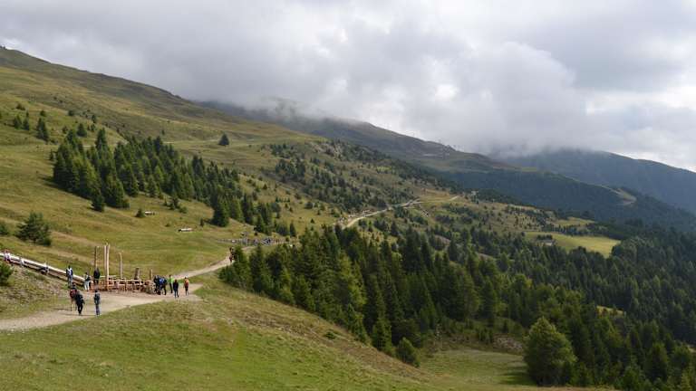 Der für Kinder angelegte WoodyWalk führt von der Plose-Bergstation auf ca. 2000 Metern Höhe zur ca. 2 km entfernten Rossalm. Erster Höhepunkt ist der schöne Spielplatz an der Bergstation. Auf dem meist flach ansteigenden Weg zur Alm liegen dann liebevoll angelegte Spielstationen für Kinder, z.B. eine Holzrutsche, Kletterbäume, eine Barfußweg, eine Wassermühle etc. An der Alm, die wirklich sehr gutes Essen bietet, befindet sich dann ebenfalls ein großer Spielplatz mit Trampolin sowie einem kleinen Weiher unterhalb, über den man mit einem Floß übersetzen kann. Auf dem ganzen Weg hat man dabei übrigens bei schönem Wetter einen tollen Blick auf die Dolomiten.