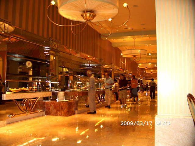 Nach vielen Lobeshymnen auf das Wynn Buffet beschlossen wir diesmal die Probe aufs Example zu machen und statteten ihm einen Besuch ab.Allgemein muss man sagen,fast alles schmeckt wirklich gut,die Asiaecke wars nich ganz so und die Desserts sehen teilweise besser aus als sie schmecken.Kann aber auch daran liegen das nach ausgiebigem Schlemmen für Desserts kein Platz mehr war.Das allgemeine Problem der meisten Buffets findet man hier...wenn man die Auslagen abgelaufen ist und am Platz angelangt,ist das Essen meist nicht mehr warm,was aber dem Geschmack keinen Abbruch tut.Alles in Allem waren wir zufrieden,kleiner Tip...das ARIA-Buffet ist besser und 10$ günstiger.