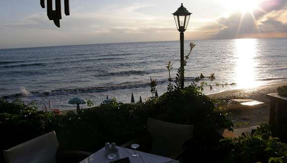 Das Zefyros haben wir gleich am ersten Abend entdeckt und blieben beinahe die ganze Woche dabei. Es liegt direkt am Strand mit einer grün bewachsenen 3-stufigen Terasse, sodass jeder einen schönen Blick auf den allabendlich wunderbaren Sonnenuntergang hat. Die Speise- und Weinkarte ist sehr umfangreich. Der Schwerpunkt liegt auf griechisches Spezialitäten sowie PAsta und Pizza. Ich persönlich kann jedoch empfehlen bei den Spezialitäten zu bleiben. Besondere Erwähnung sollen hier Stifado, Kleftiko und Stamna finden sowie das hausgemachte Tsatsiki uznd die mit Spinat gefüllten Champignons als Vorspeise. Hinzu kommt ein reizender und guter Service. Wir bekamen sogar mal ein Dessert aufs Haus.