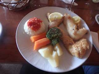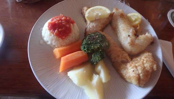 Auf Empfehlung unserer Reiseleiterin machten wir bei unserer Stadtbesichtigung von Santa Maria im Fischrestaurant Zum Fisherman/Turi Fogo Mittagspause. Bei der Ankunft wurden wir von den deutschen Eigentümern Jutta und Uwe freundlich begrüßt. Sie berieten uns ausführlich, was sie heute anbieten und empfehlen könnten - denn das wechselt von Tag zu Tag je nach den Fängen der Fischer. Wir wählten einen Fischteller mit Beilagen. Da keine weiteren Gäste in dem Lokal anwesend waren, erzählten uns die beiden, wie sie auf die Insel Sal und zu ihrem Fischrestaurant kamen. Uwe interessiert sich darüberhinaus sehr für die Vogelwelt auf der Insel und konnte schon Arten identifizieren, die vorher noch nie auf Sal gesehen wurden. Außerdem engagiert er sich im Sozialen und hat u.a. eine Spendendose für die Kinder von Terra Boa. Die Zeit bis zum Servieren des Essens verging so sehr schnell. Der Fischteller war liebevoll hergerichtet und die drei Fischsorten, wir haben vergessen welche es waren, schmeckten ebenso wie die Beilagen sehr gut. Das Personal war ebenfalls freundlich und aufmerksam. Das Preis-/Leistungsverhältnis war sehr gut. Anschließend hatten wir noch die Gelegenheit, den liebevoll gestalteten Innenbereich des Restaurants anzusehen. Wir können das Turi Fogo bedingungslos weiterempfehlen.