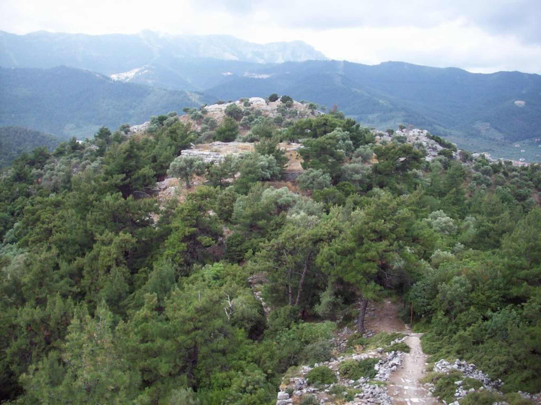 Blick von Akropolis auf Athena-Tempel und Pan-Heiligtum