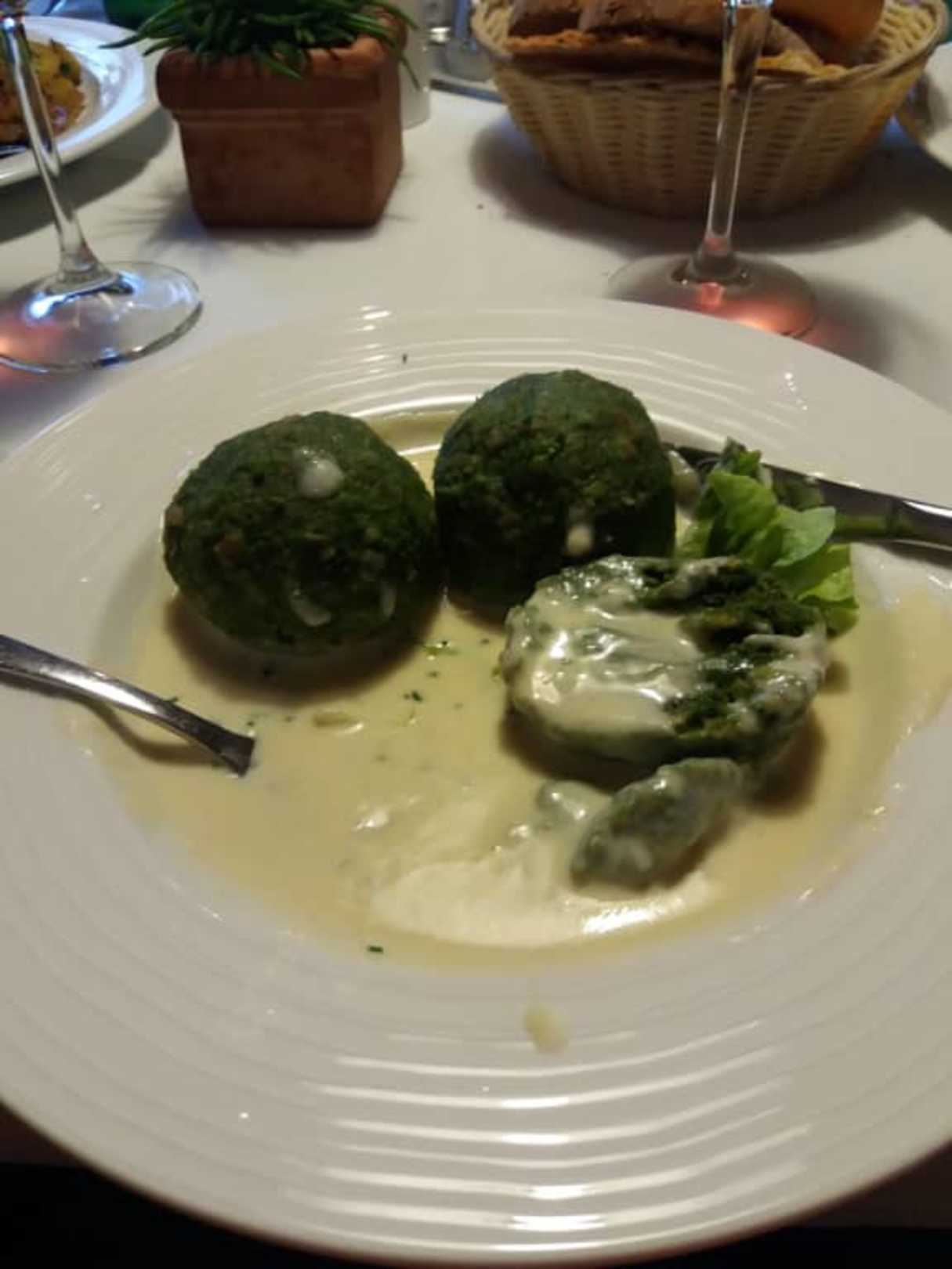 Spinatknödel mit Gorgonzolasoße
