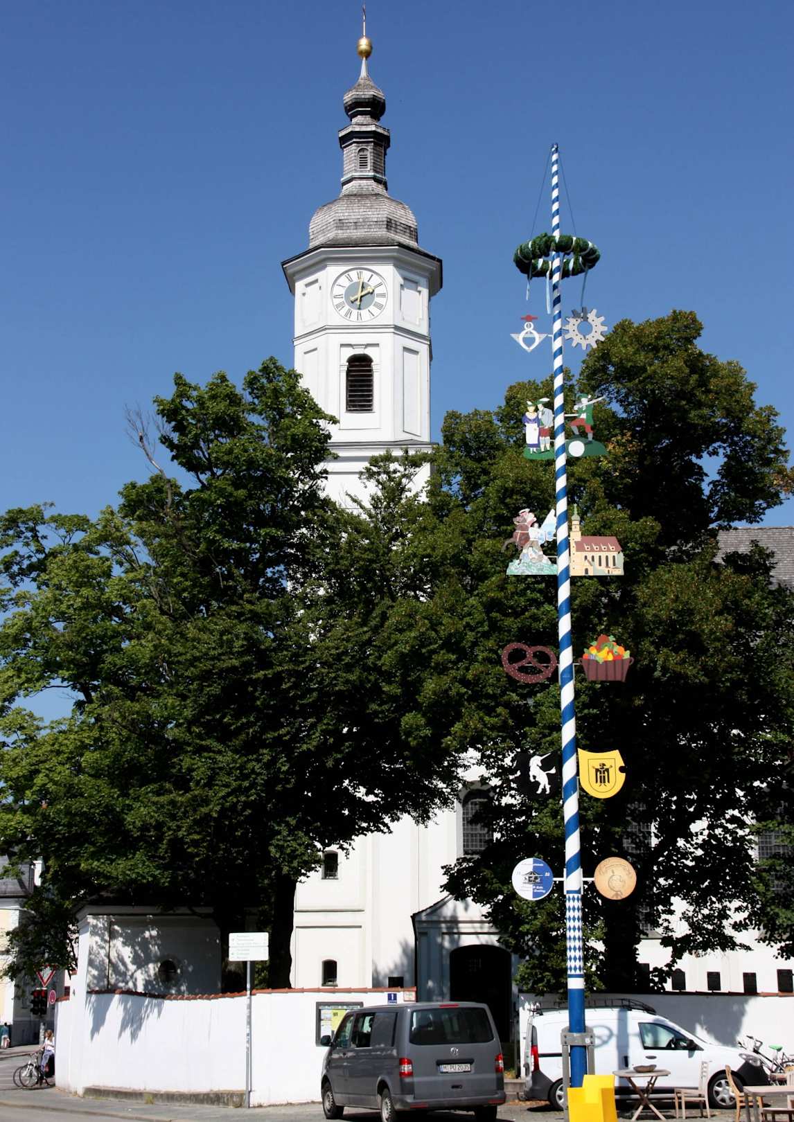 Alte Dorfkirche mit Maibaum