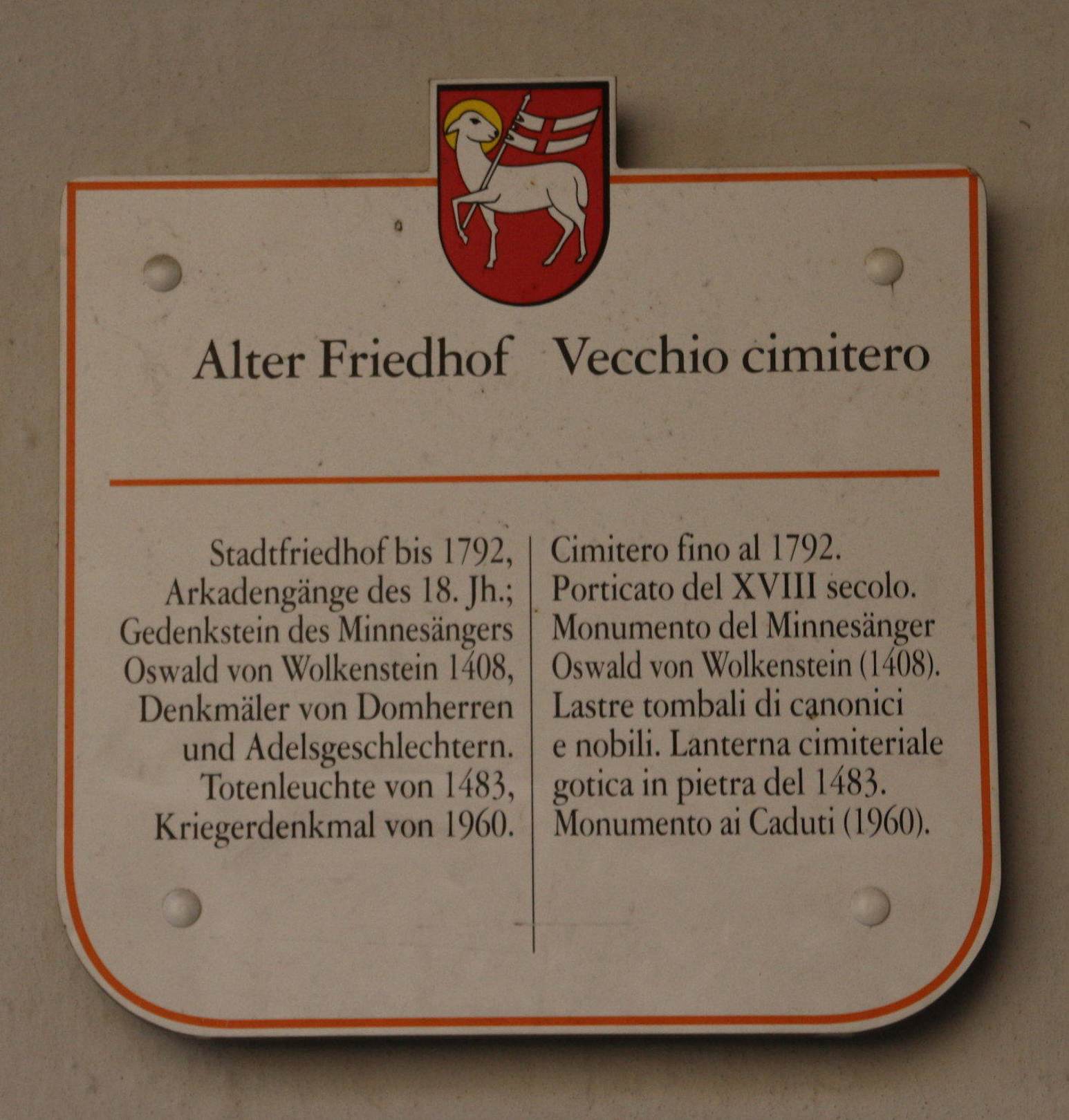 Historische Beschreibung Alter Friedhof Brixen