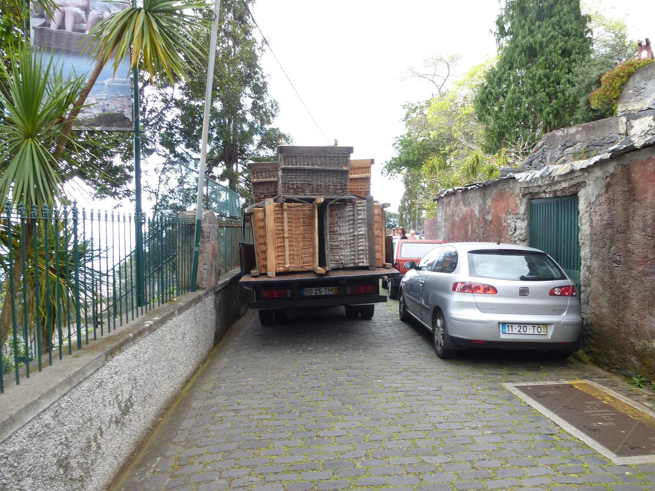 Per LKW werden die Korbschlitten zurück gebracht.