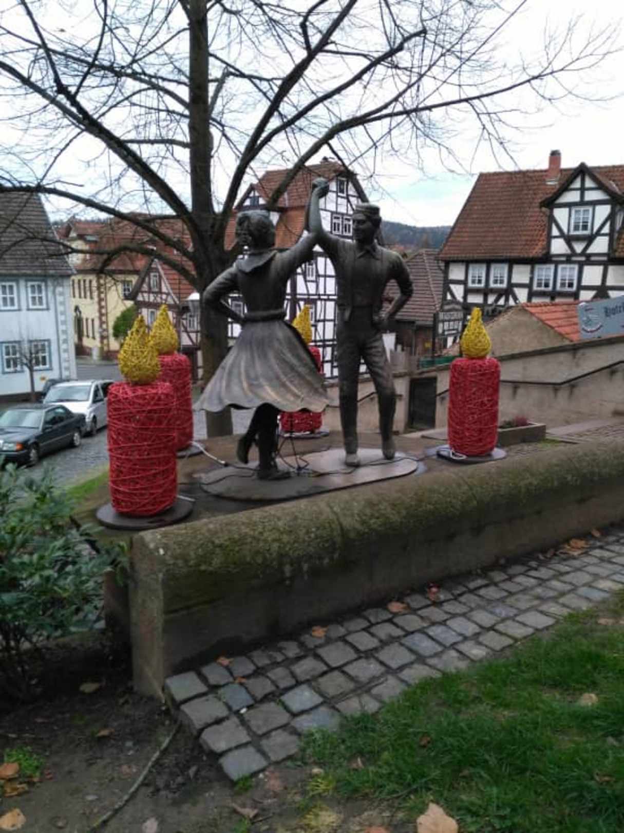 Kunstwerk beim Aufgang zur Stadt