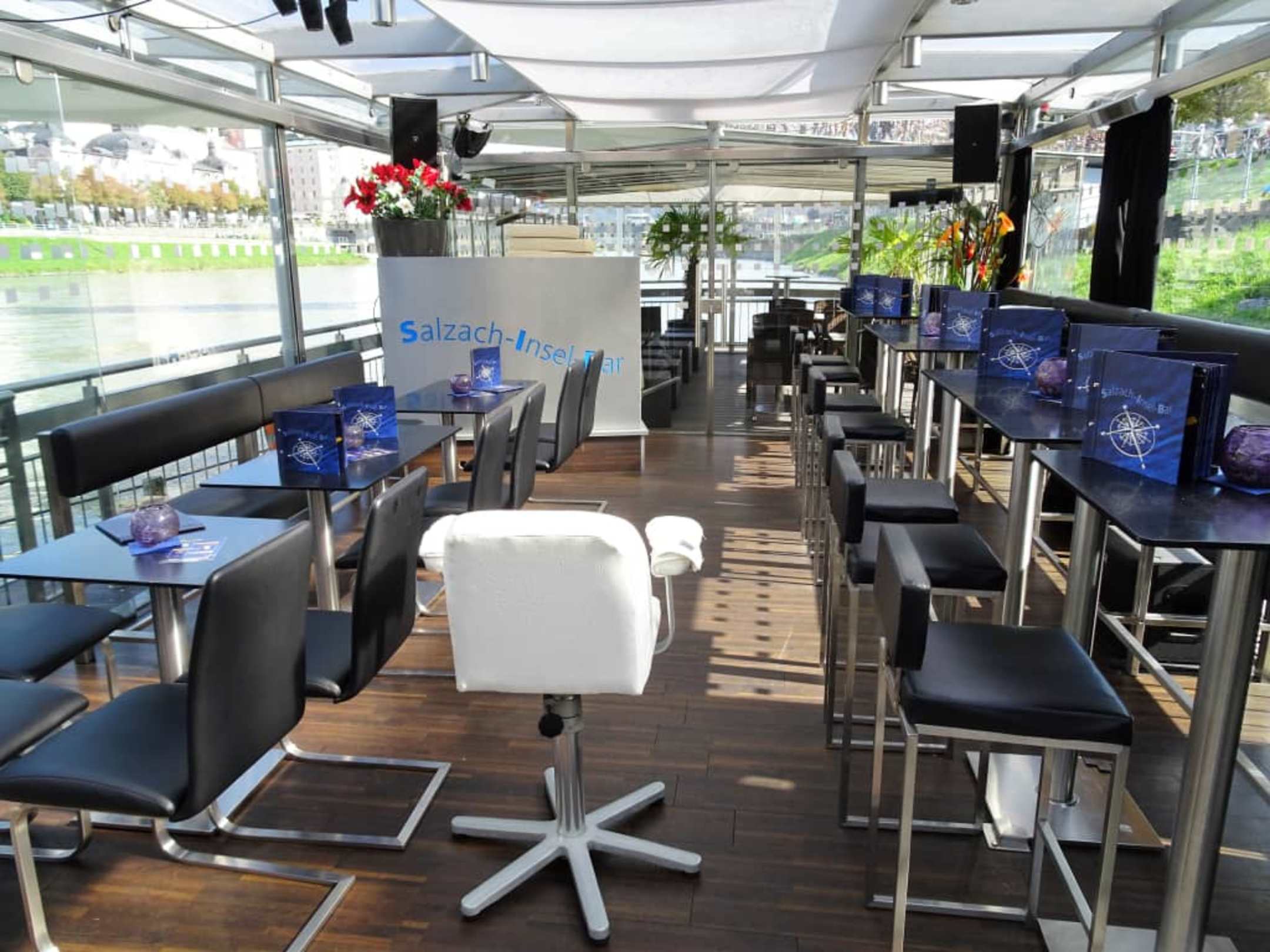 Blick in den Innenraum der Salzach-Insel-Bar