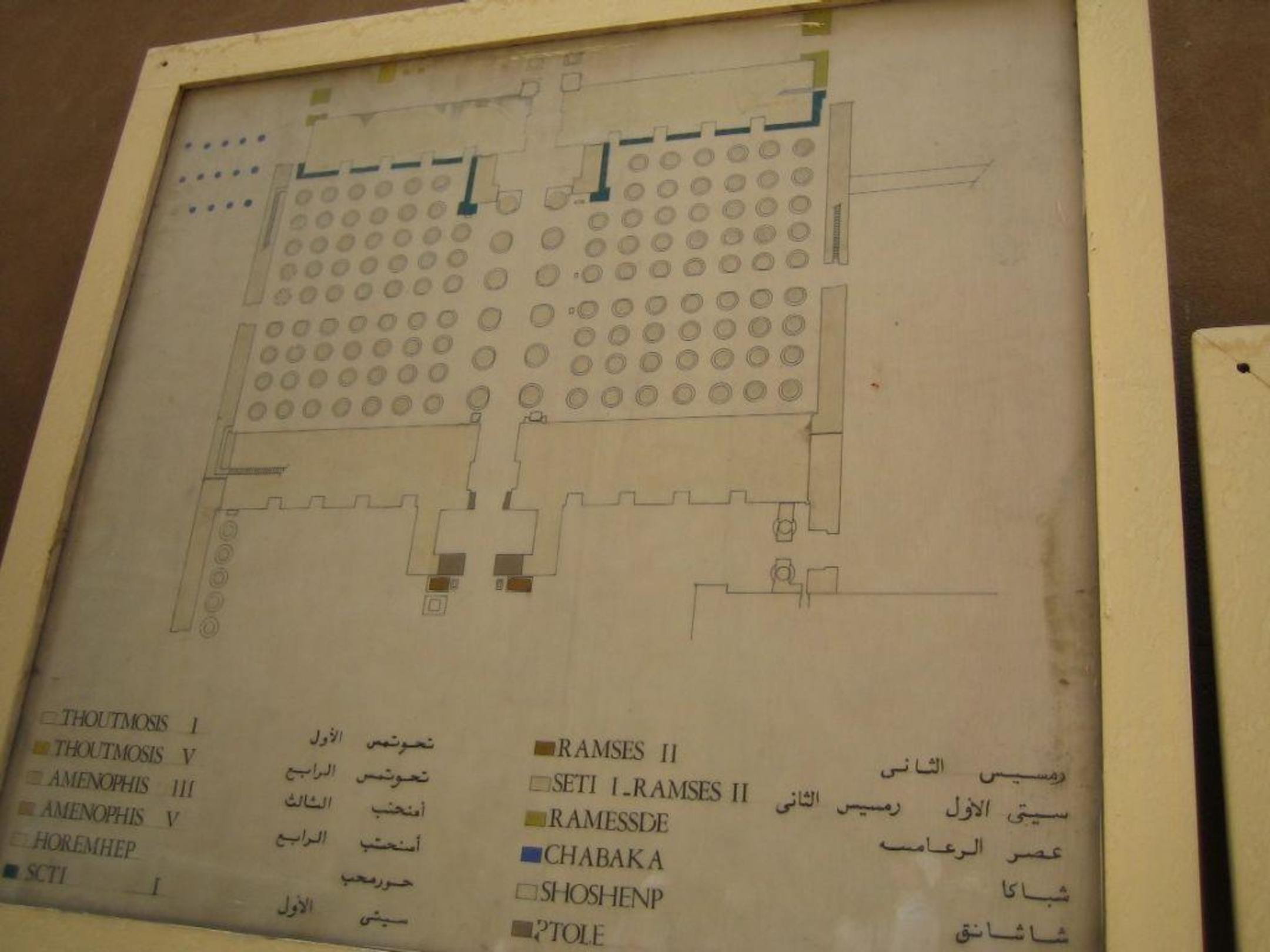 Eine Schautafel über den Säulengang im Tempel.