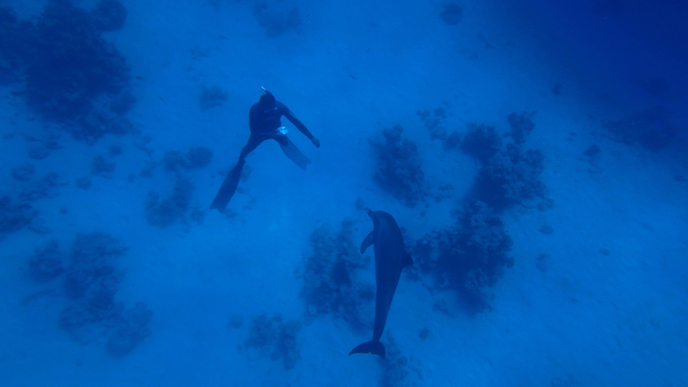 Spielen mit Delfinen, die Guides immer voraus