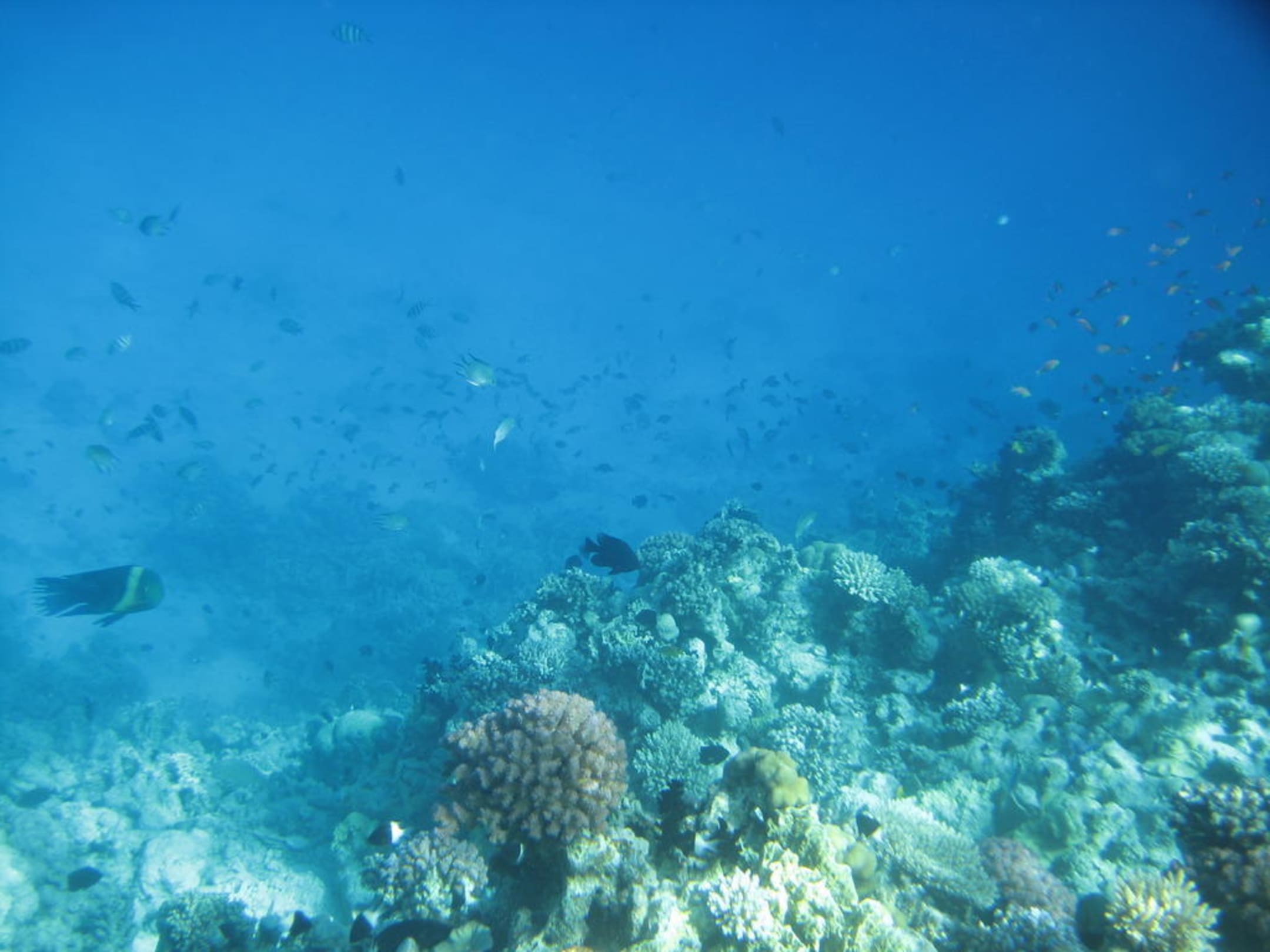 Korallen und bunte Fische