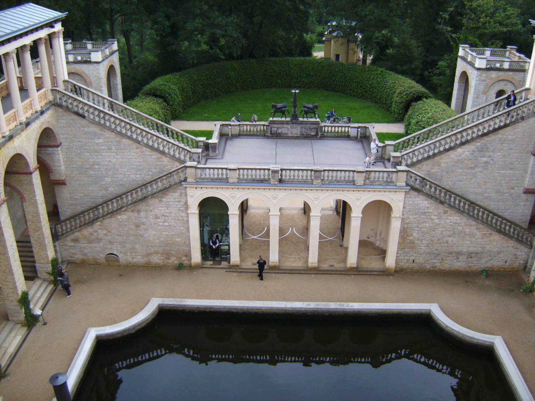 Blick vonBelvedere auf Innenhof, Laubengang und Tempel