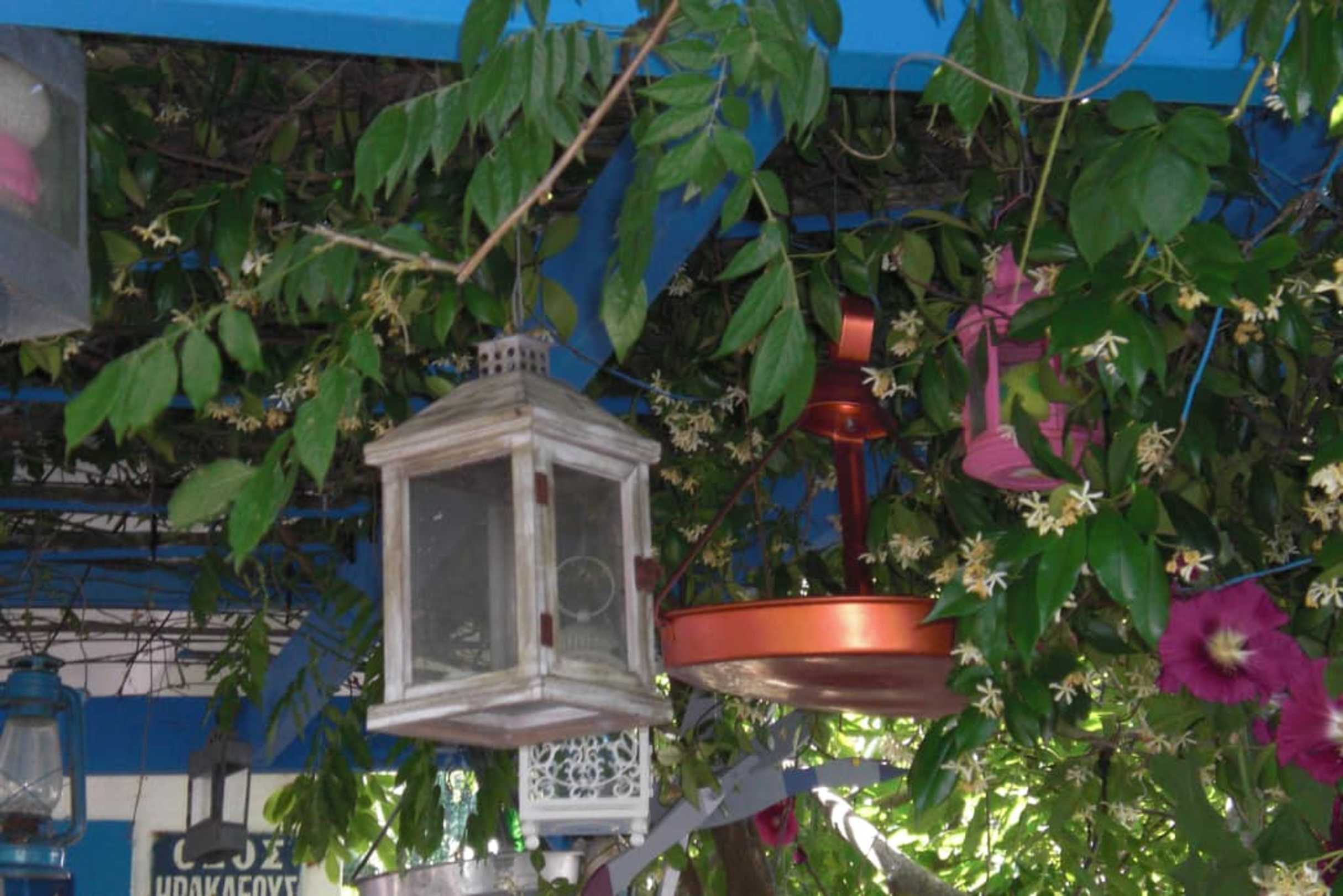 Viele Blumen und eine alte Laterne